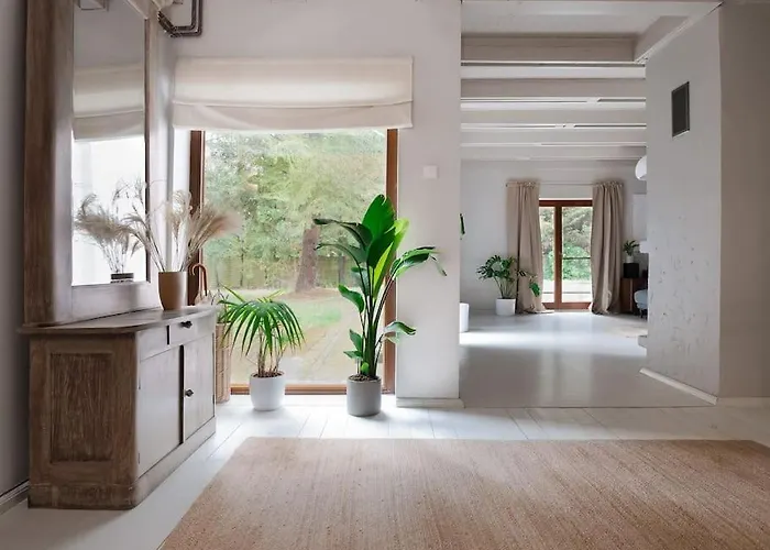 Situated around 4 km from the Stawinoga Nature Reserve, the 2-bedroom Lesny Dom Z Basenem W Okolicy Zegrza Villa Gasiorowo invites guests to relax at a terrace. Guests can enjoy hiking, badminton…
